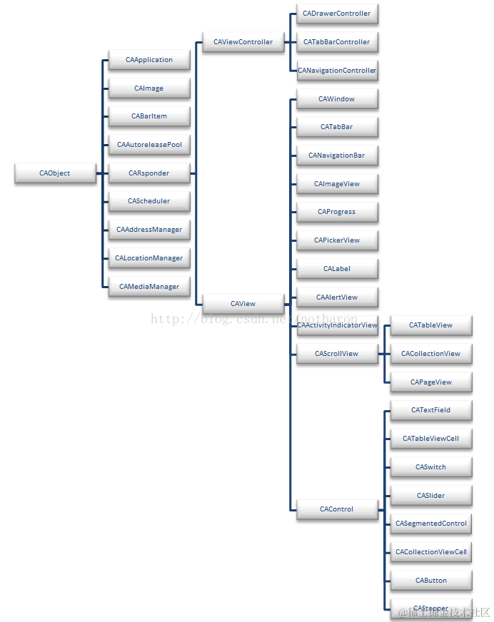 CrossApp的根类是CAObject,主要分为视图(view)和控制器(controller),view都派生自CAView,controller都派生自CAViewController。