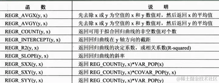 线性回归函数可以用普通最小平方回归曲线拟合一组数值对。线性回归函数可用于聚合、串口或报表函数。