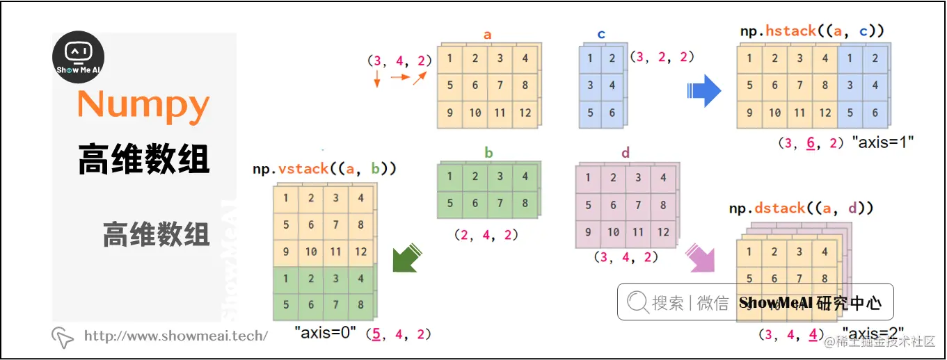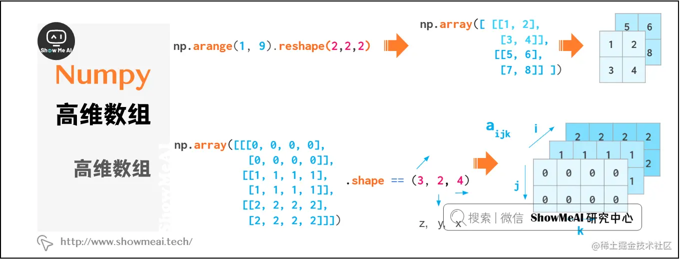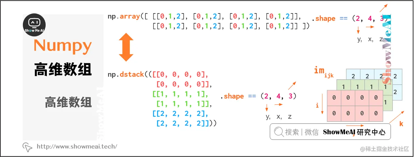 n维数组是NumPy的核心概念,大部分数据的操作都是基于n维数组完成的。本系列内容覆盖到1维数组操作、2维数组操作、3维数组操作方法,本篇讲解Numpy与3维、更高维数组的操作。