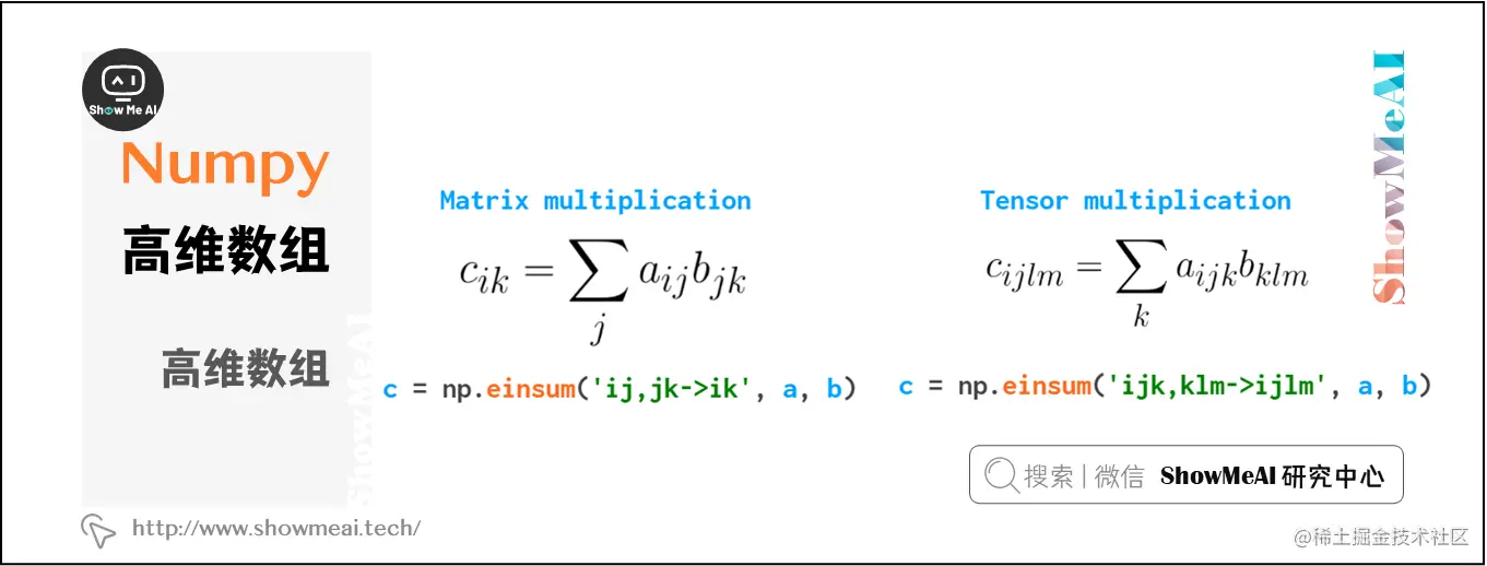 最后介绍einsum(Einstein summation)函数,这将使你在处理多维数组时避免很多Python循环,代码更为简洁: