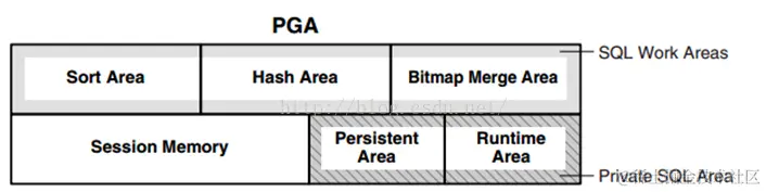 PGA主要包含两个部分Private SQL Area和 SQL Work Areas.