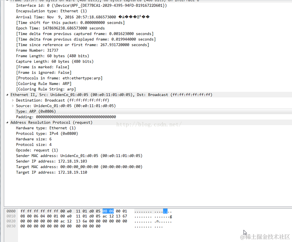 协议类型为:0x0806(ARP)