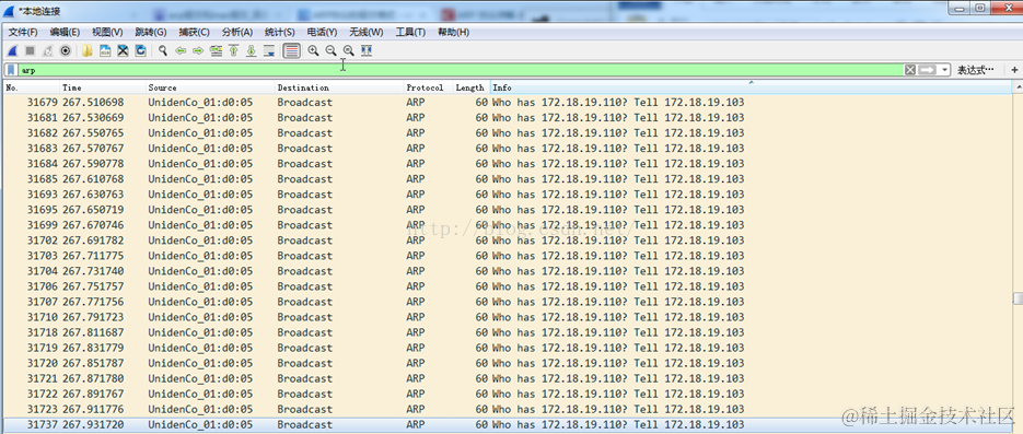 出现一大堆arp包。
