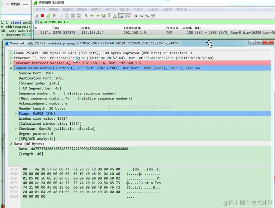 接着将SYN_DATA(TCP和IP头)加入到要发送的字符串中。