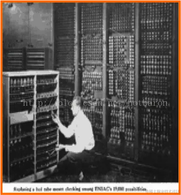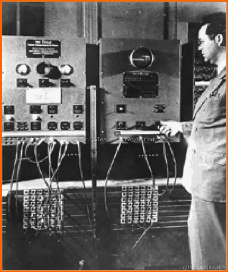 承担开发任务的“莫尔小组”由四位科学家和工程师埃克特、莫克利、戈尔斯坦、博克斯组成。总工程师埃克特在当时年仅25岁。是不是很奇怪没有冯诺依曼?其实呢,这个有个插曲,冯诺依曼当时任弹道研究所顾问、正在参加美国第一颗原子弹研制工作的数学家冯·诺依曼(v·n weumann,1903-1957,美籍匈牙利人)带着原子弹研制(1944年)过程中遇到的大量计算问题,在研制过程中期加入了研制小组。原本的ENIAC存在两个问题没有存储器且它用布线接板进行控制,甚至要搭接几天,计算速度也就被这一工作抵消了。1945年,冯·诺依曼和他的研制小组在共同讨论的基础上,发表了一个全新的“存储程序通用电子计算机方案”——EDVAC(ElectronicDiscrete Variable Automatic Computer)在此过程中他对计算机的许多关键性问题的解决作出了重要贡献,从而保证了计算机的顺利问世。