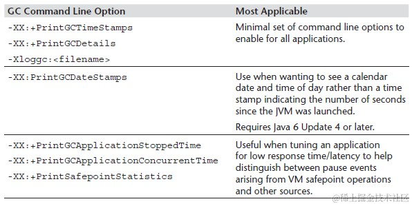 有很多的HotSpot VM命令行选项可以用在垃圾回收的日志上面,下面列举几个推荐使用的命令行选项: