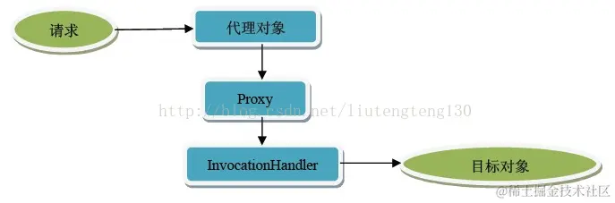 如图,目标对象的方法调用被Proxy拦截,在InvocationHandler中的回调方法中通过反射调用,这种动态代理的方法实现了对类的方法的运行时修改。