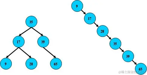树结构索引;所以,使用B树还要考虑尽可能让B树保持左图的结构,和避免右图的结构,也就
