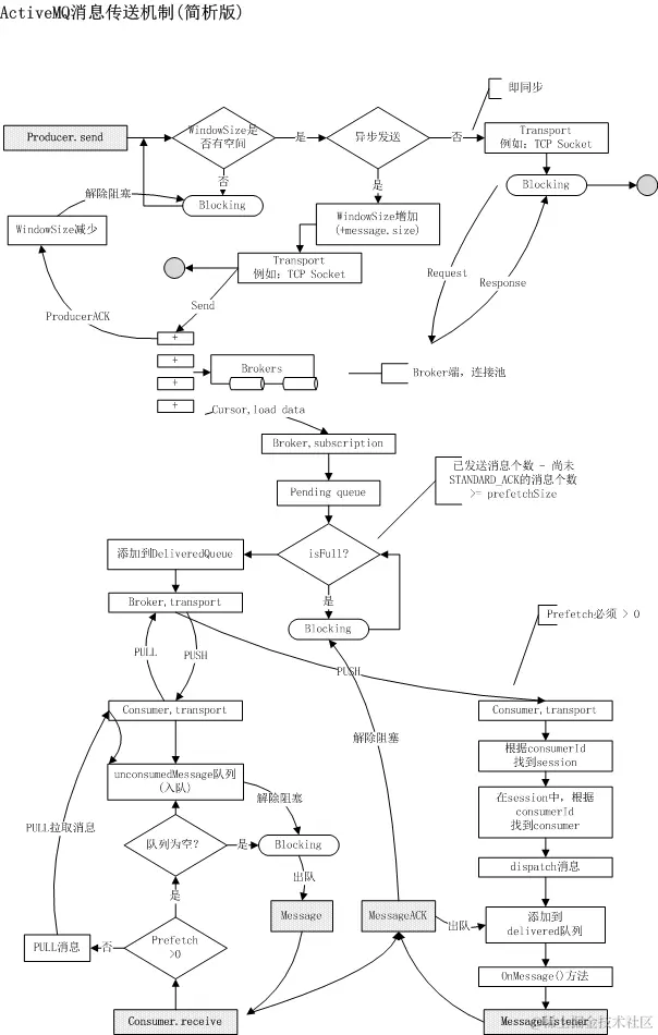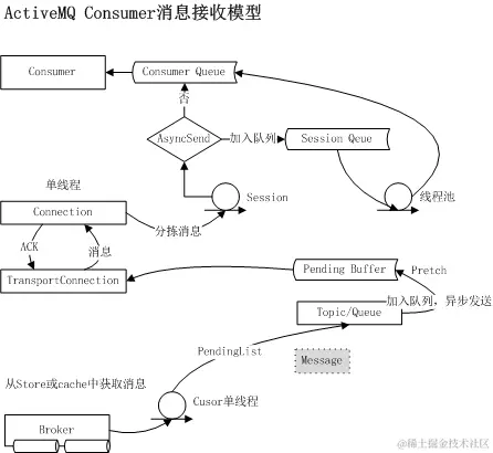 Consumer端涉及到众多的特性,其中包括:消息转发机制,session机制与多线程,消息ACK策略等,我们无法详解所有的原理,如下为Consumer端消息转发机制,仅供参考,[详细请参考]: