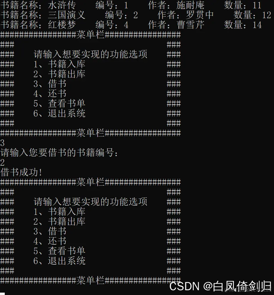 printf("### 3、借书 ###\n");