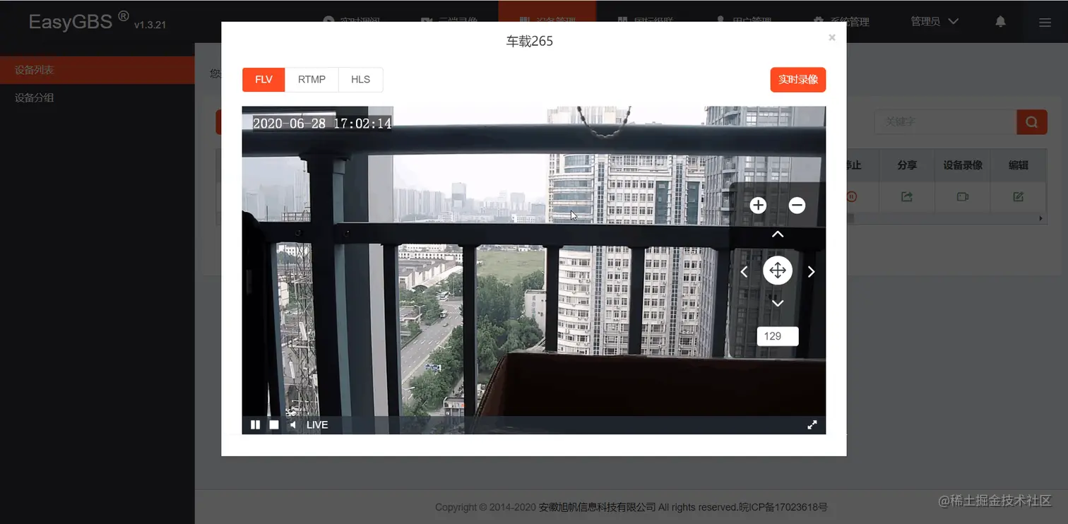 再次重启EasyGBS服务,云台控制模块的操作已经恢复了正常(如图)。