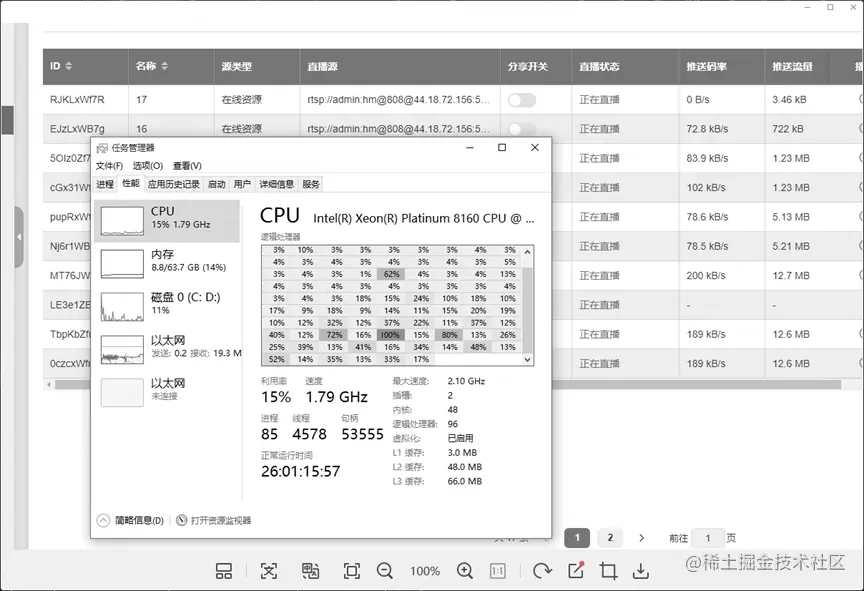 我们在排查中了解到,性能出现这么大的差距,是因为用户使用的命令中没有指定视频编码器,默认是使用flv1编码,码率很小,RTSP视频流不能播放,而且Web播放器也不支持播放。我们的EasyNVR平台添加了-vcodec libx264参数,指定了H.264编码器,编码后可以支持Web播放器播放。