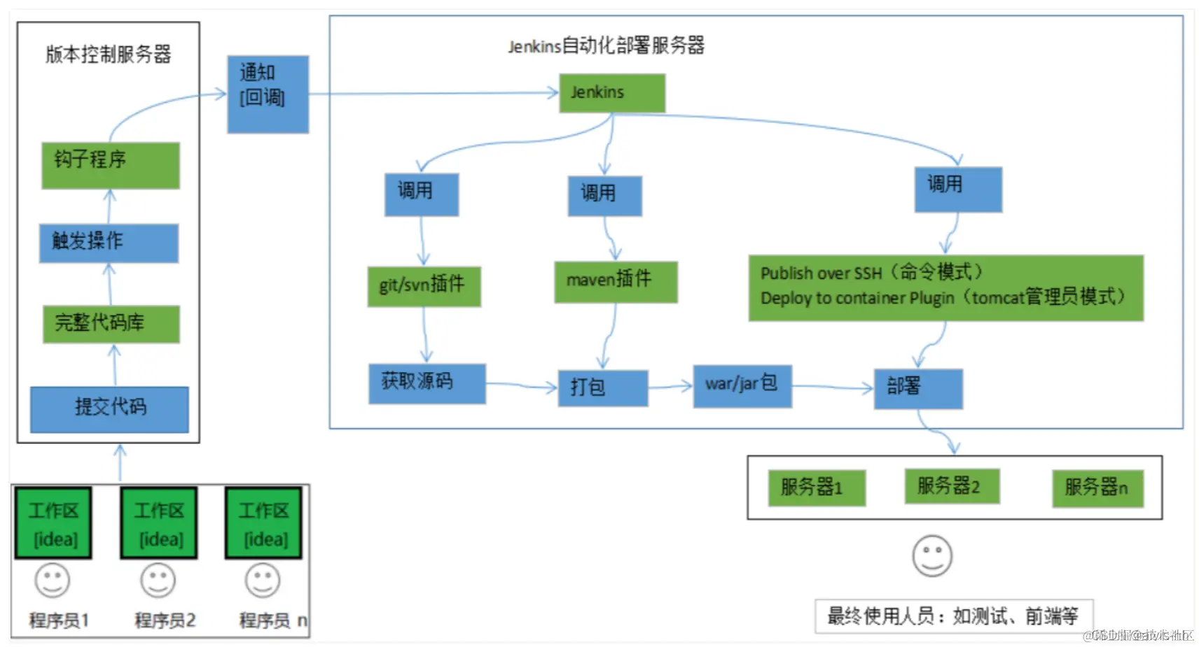 测试人员能够通过命令行实现的,jenkins都可以做到 插件: Publish Over SSH 插件很多, 重要是思路, 每一个插件的具体步骤都有很多资料