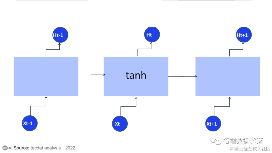 所有循环神经网络都具有神经网络的重复模块链的形式。在标准 RNN 中,此重复模块将具有非常简单的结构,例如单个 tanh 层。