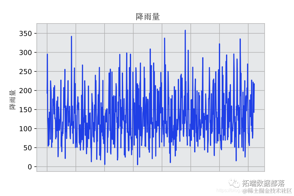 每年的降雨量数据可能是相当不平稳的。与温度不同,温度通常在四季中表现出明显的趋势,而雨量作为一个时间序列可能是相当不平稳的。夏季的降雨量与冬季的降雨量一样多是很常见的。