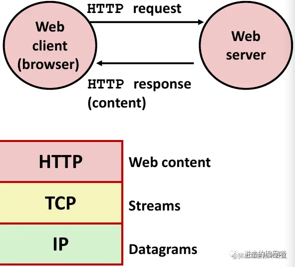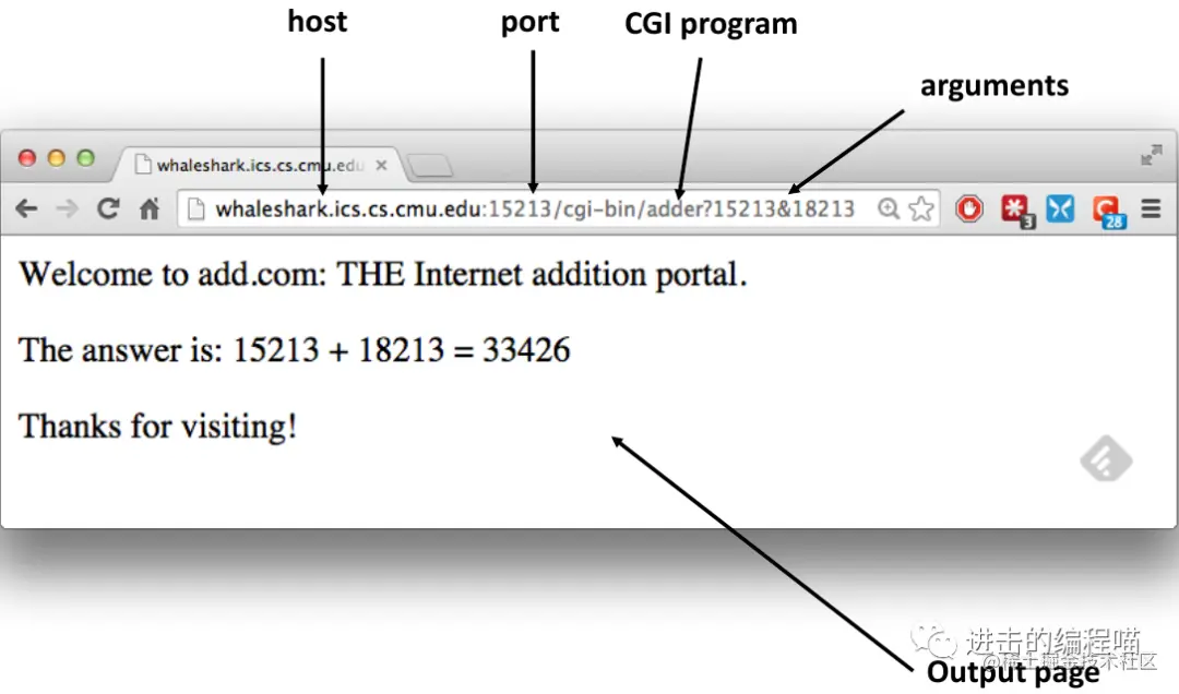 Web 服务器使用 HTTP 协议和客户端(例如浏览器)彼此通信。浏览器向服务器请求静态或者动态的内容。对静态内容的请求是通过从服务器磁盘取得文件并把它返回给客户端来服务的。对动态内容的请求是通过在服务器上一个子进程的上下文中运行一个程序并将它的输出返回给客户端来服务的。CGI标准提供了一组规则,来管理客户端如何将程序参数传递给服务器,服务器如何将这些参数以及其他信息传递给子进程,以及子进程如何将它的输出发送回客户端。最后实现一个简单但是有效的 Web 服务器,既可提供静态内容,也可提供动态内容。