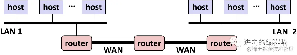 多个不兼容的LAN可通过 router来进行物理上的连接,连接起来的网络叫internet(注意是小写)