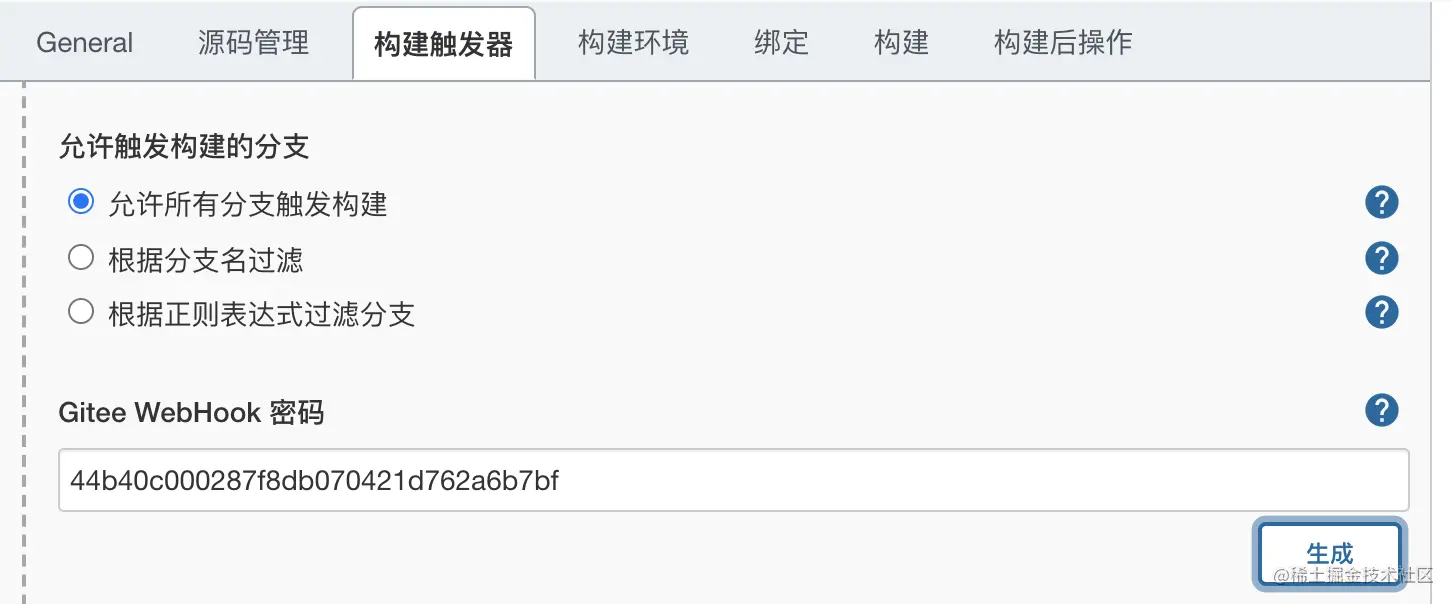 2,在 jenkins 生成 WebHook 秘钥: