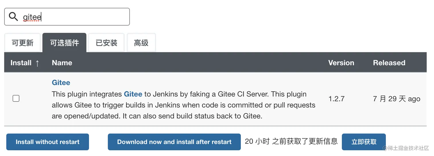 搜索 gitee,安装 gitee 插件: