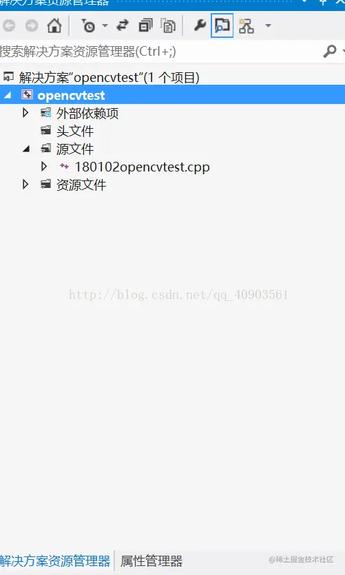 建立好如上图的项目(我这个是win32)之后,打开项目的属性界面,右下角就有属性管理器,如果没有就去视图---其他窗口-----属性管理器里找。