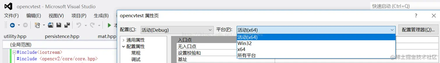 右键项目,然后在平台选择X64,如果没有X64只有win32就配置管理器,然后自己加一个X64