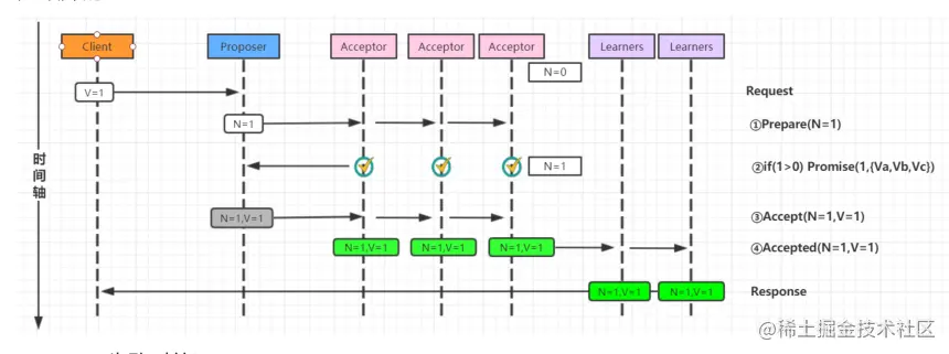 - Acceptor收到的提案编号比本地的大,就通过