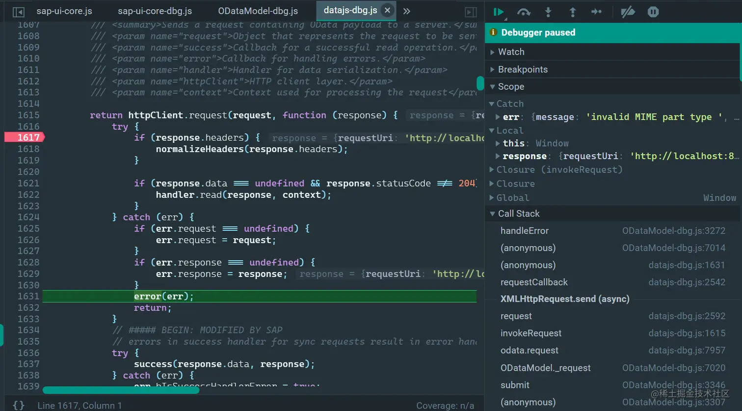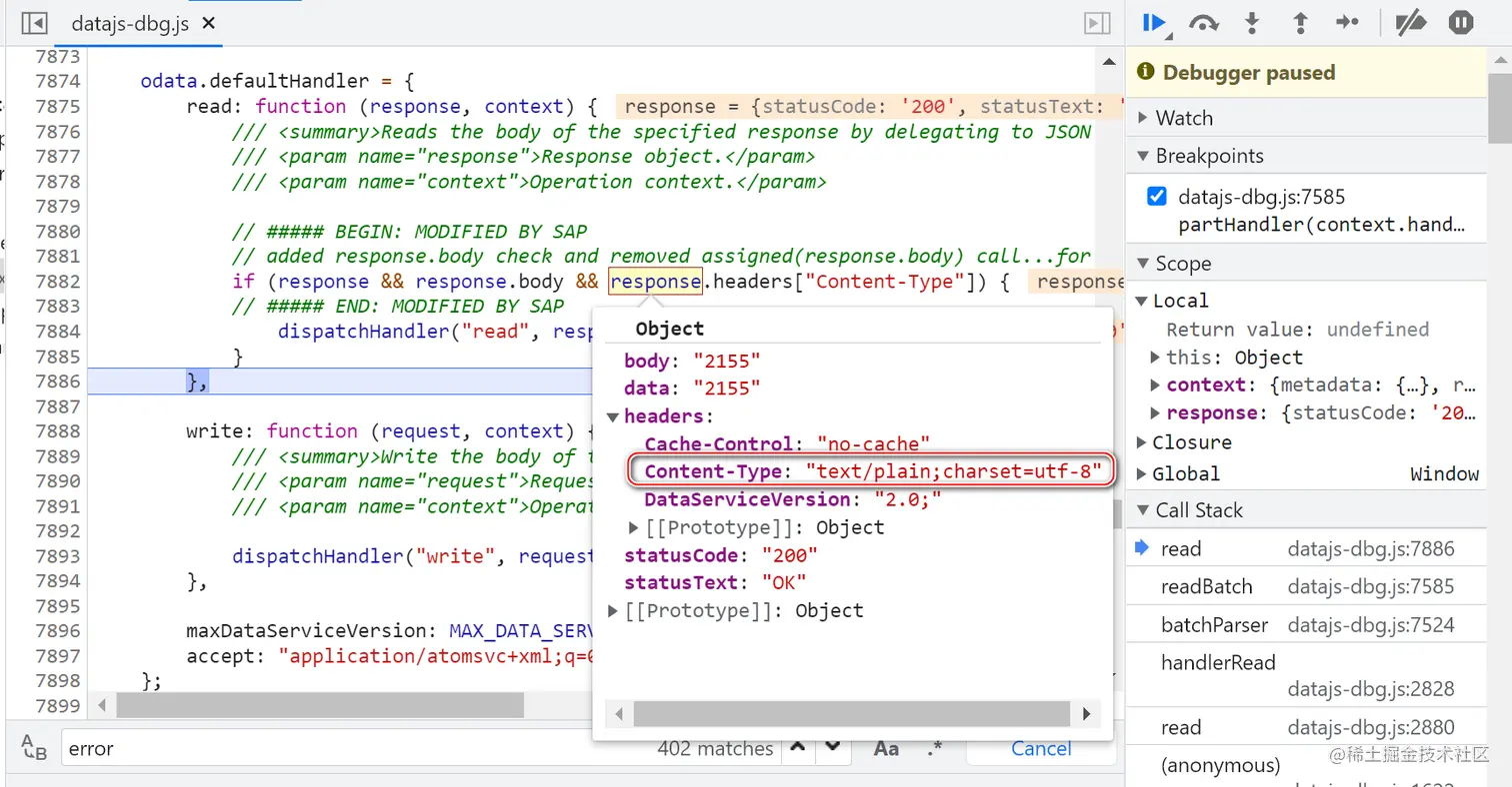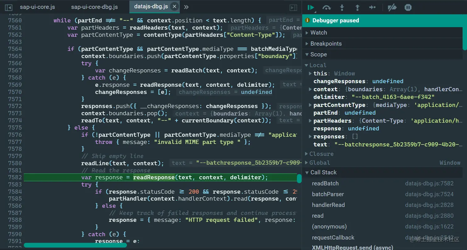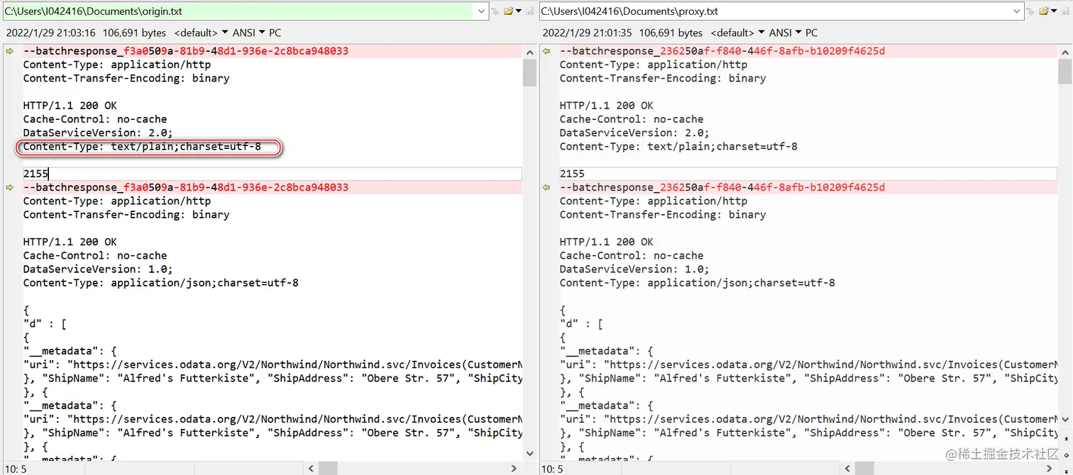 在出错情况下,从 Chrome 开发者工具 network 标签页里下载 batch 响应到本地,和不出错的场景比较,格式上没有任何差异: