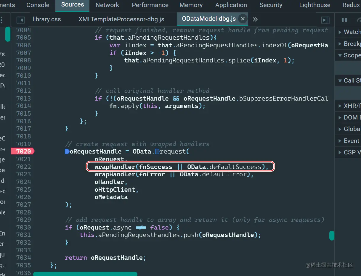 success handler 即下图的 fnSuccess, 被包裹在 wraHandler 里。