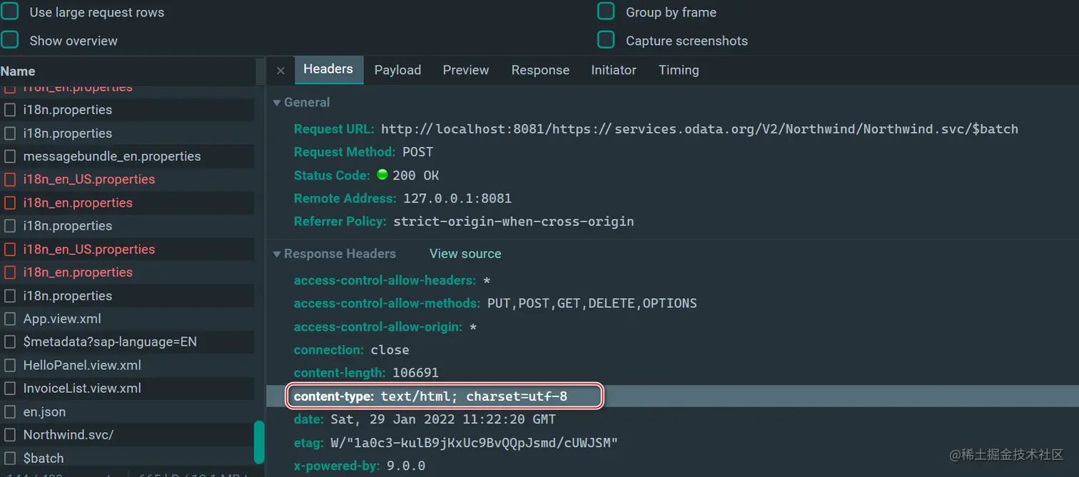 chrome 里看到的 content-type 不是这个啊: