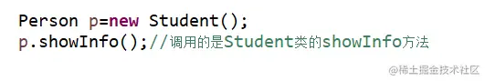 - 编译时e为Person类型,而方法的调用是在运行时确定的,所以调用的是Student类的getInfo()方法。——动态绑定