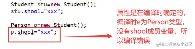 - 例如:Student stu=new Student();其中Student stu为编译时类型,new Student()为运行时类型