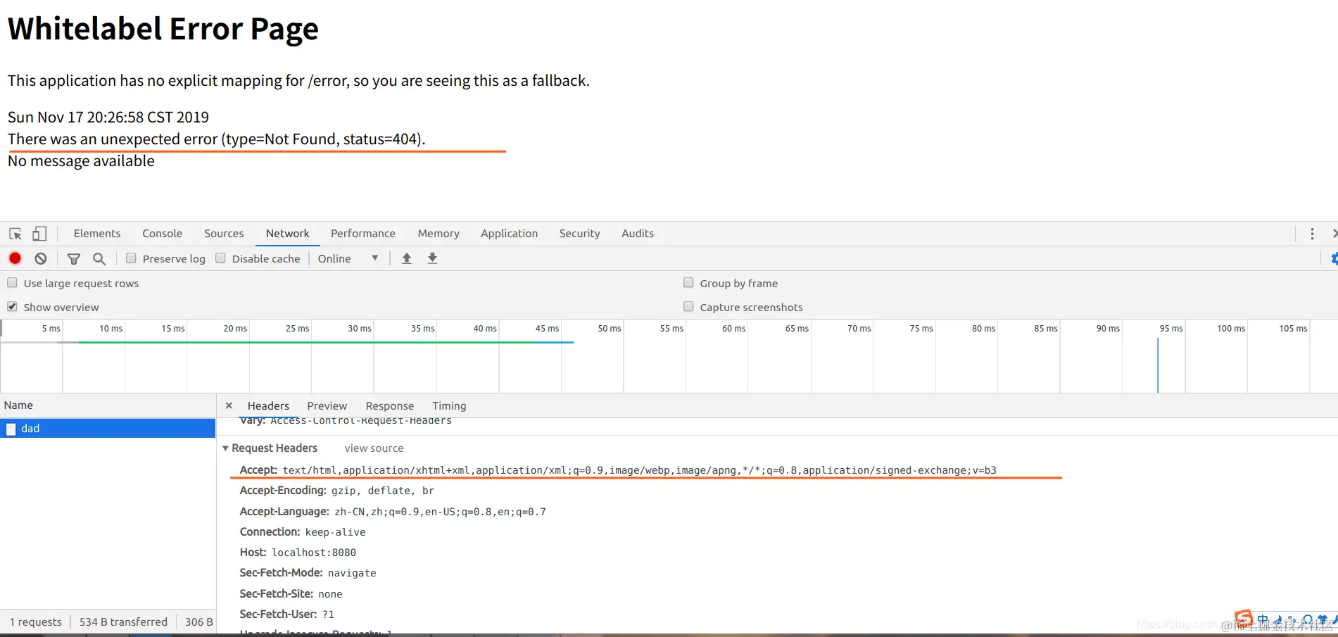 - 浏览器返回一个错误的页面,注意查看浏览器发送请求的请求头