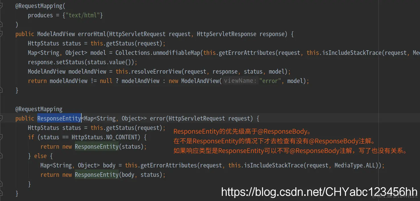 由上面我们已经知道数据的来源是调用DefaultErrorAttributes的getErrorAttributes方法得到的,而这个DefaultErrorAttributes是在ErrorMvcAutoConfiguration配置类中注册的,并且注册之前会检查容器中是否已经拥有