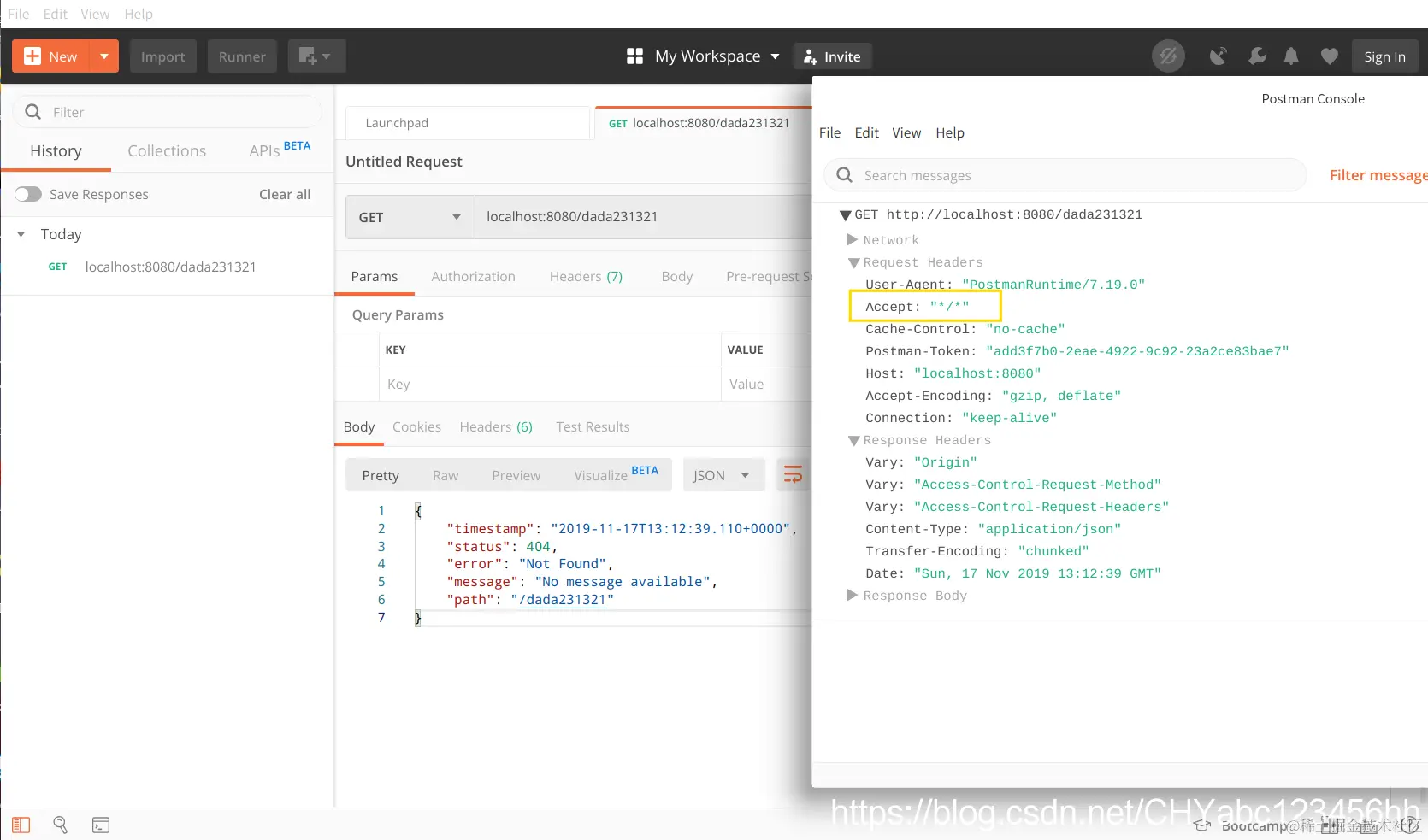 springboot做了自适应效果,浏览器访问响应错误页面。客户端访问响应错误信息的json数据