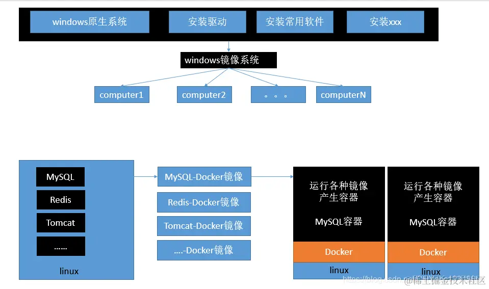 - Dcoker支持将软件编译成一个镜像;然后在镜像中对各种软件做好配置,再将镜像发布出去,供别人使用