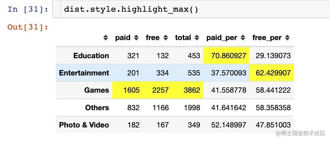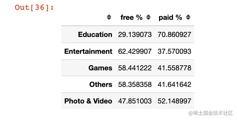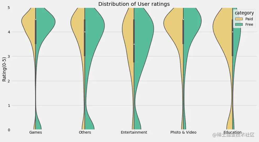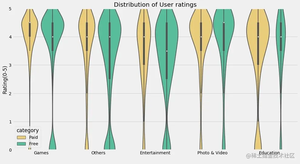 - Entertainment娱乐的APP,free占比高于paid;且整体的占比分布更为宽