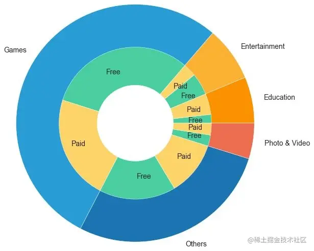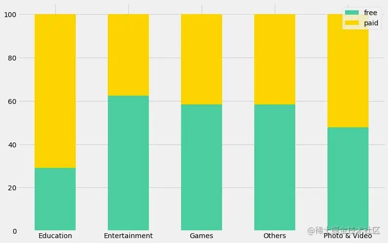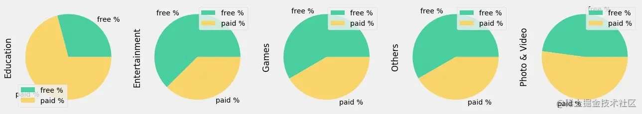 - 在Education类的APP中,paid的占比是明显高于free;其次是Photo & Video