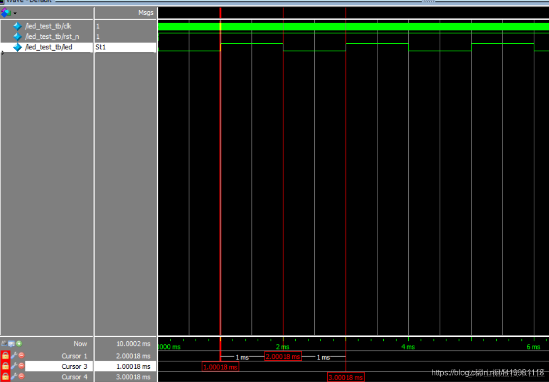 可以看出时间间隔正是1ms,所以实现了1ms翻转一次。