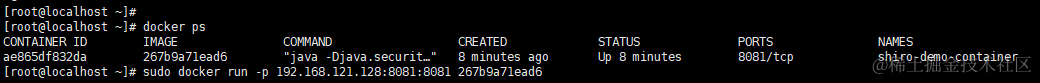 并且docker容器会有shiro-demo-container容器和镜像产生。