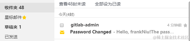 3.gitlab创建新用户,可以收到邮件。