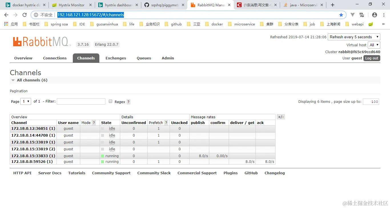 输入 http://192.168.121.128:15672,账号guest/guest可以看到下图