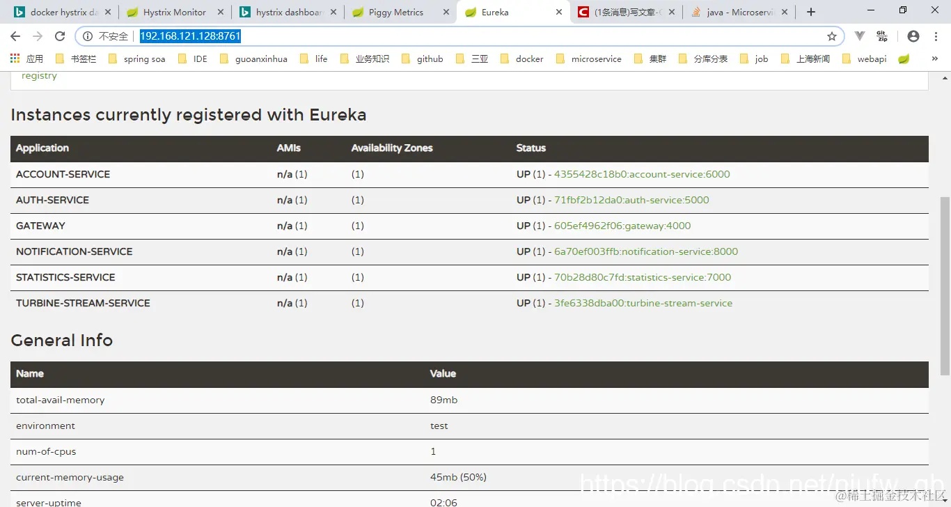 至此,piggymetrics搭建完毕。hystrix dashboard的原因还是未知。应该是image原因。但是dashboard中没有业务代码,完全可以用别的image代替。当然项目代码也要换一个。最好在本地测试通过再部署,不要像我直接换镜像。