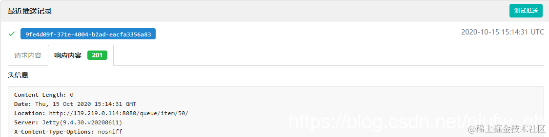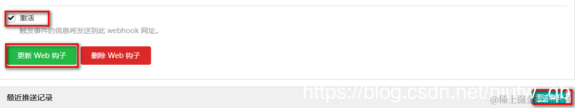 找到gitea上面对应的项目,进入仓库配置,选择管理web 钩子选项卡,在目标url中输入刚才jenkins中的地址,选择get方法请求。选中推送事件选项,然后点击更新钩子,并按测试按钮,就会触发测试构建