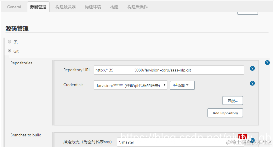 a. 配置gitea代码仓库,就是刚才的gitea项目的地址,然后创建访问的账号,用户名和密码方式。