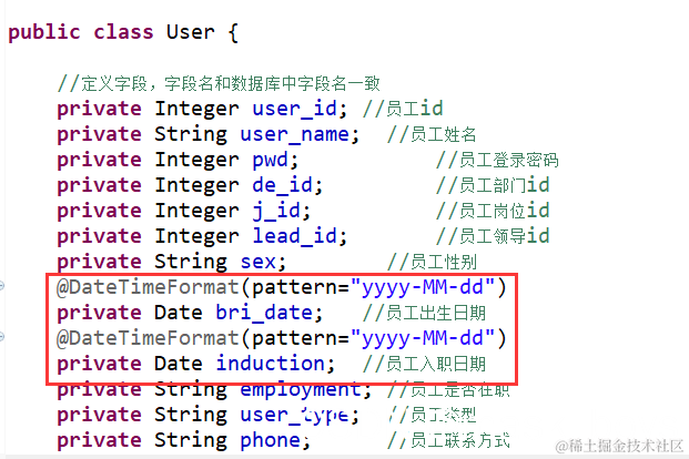 但是我的name和接收参数名一致了,还是会报错,上网查询了很久,后面发现我的实体类中是需要添加日期的,但是输入的日期由于spring无法解析存入数据库中,所以需要在实体类中添加日期的注解:@DateTimeFormat(pattern="yyyy-MM-dd")