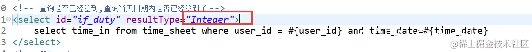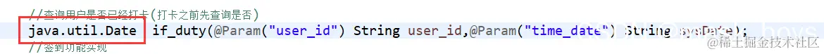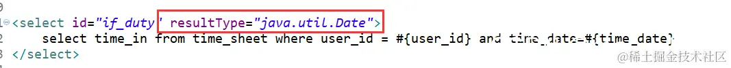 在查询语句中,要查询的是time_in ,这个在我的数据库中数据类型是date,所以在返回值类型中不可以使用int来接收,只能使用java.util.Date。