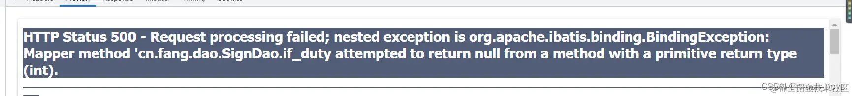 在mapper的映射文件中,你要放回的结果类型resultType=int,int是不接收空值的,所以应该改成他的包装类。如果你查询语句需要返回一个对象,那么你的结果类型应该也得返回一个对象,对象名就是表名对应的实体类名字