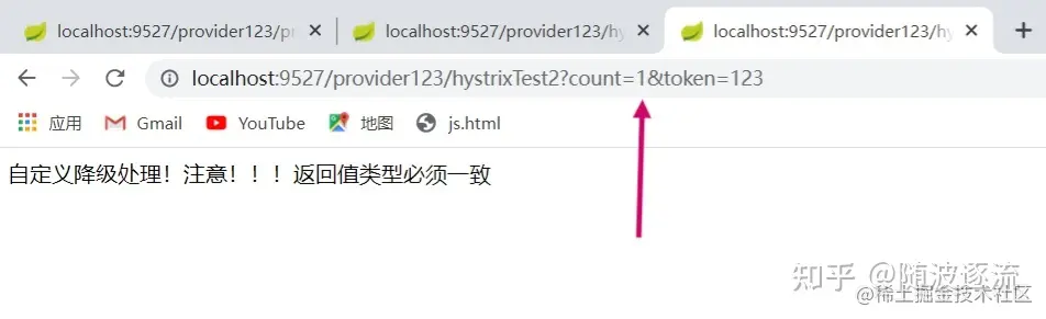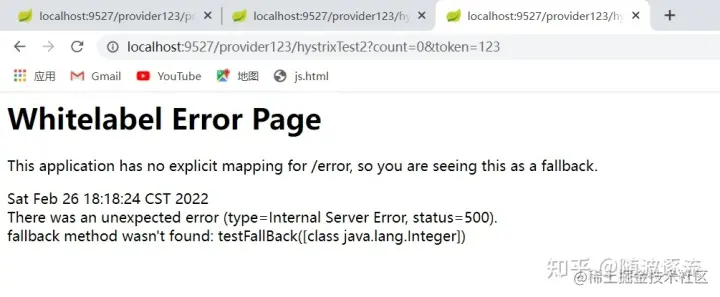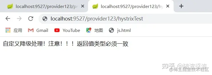 @HystrixCommand(fallbackMethod = "testFallBack") // 自定义降级处理