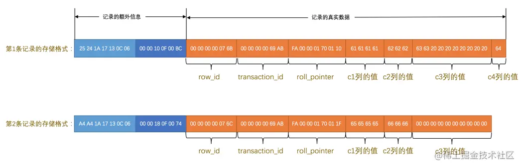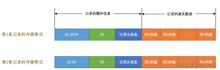 这里需要讲讲记录行格式的 记录头信息 。在下一节行格式中详细讲解。