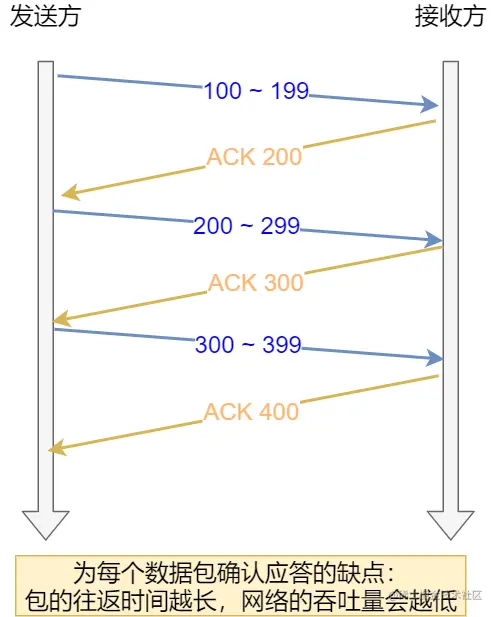 我们都知道 TCP 是每发送一个数据,都要进行一次确认应答。当上一个数据包收到了应答了, 再发送下一个。